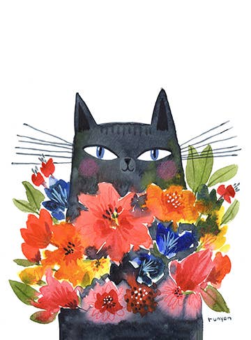 Floral Feline - A2 greeting card