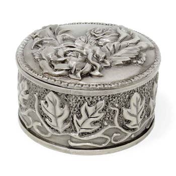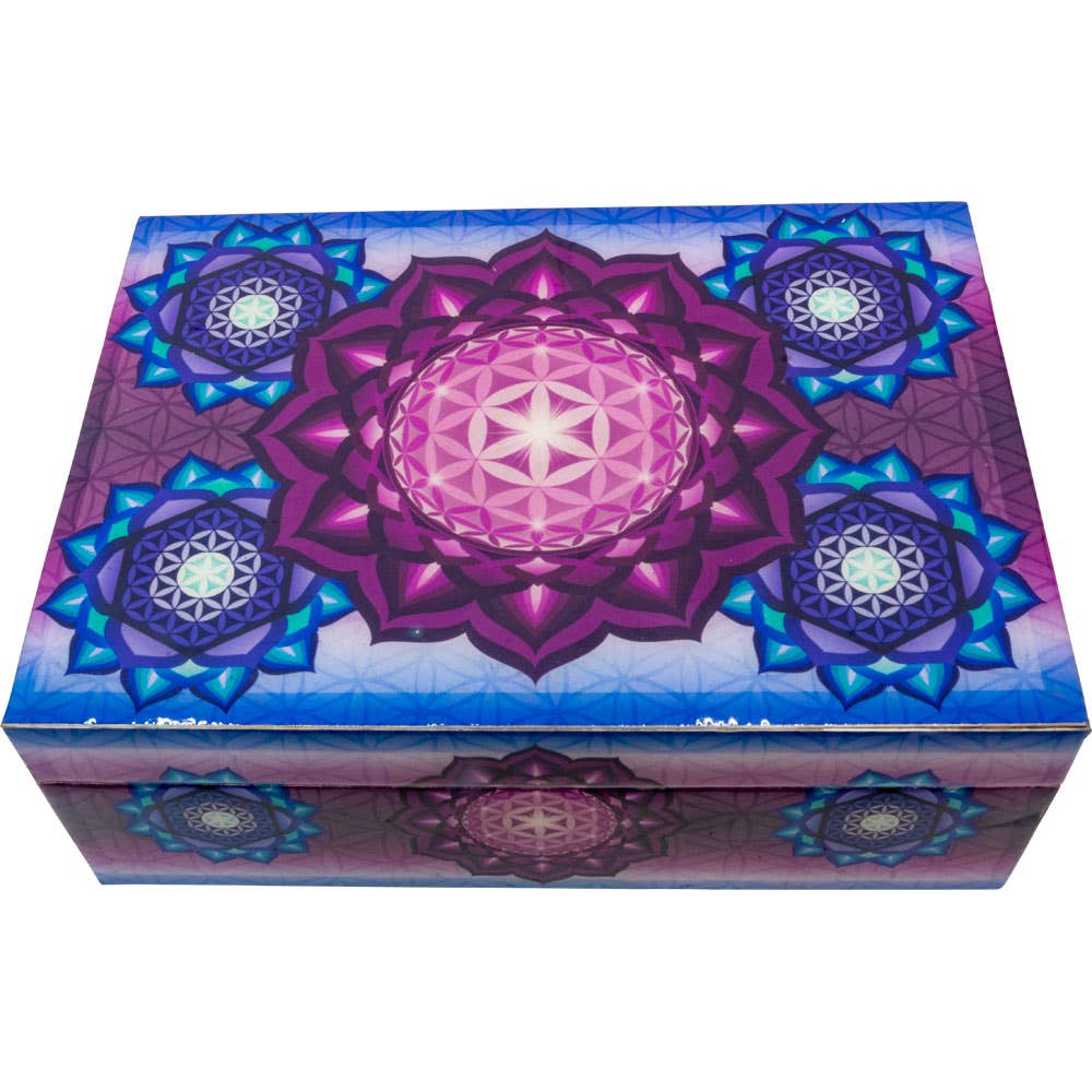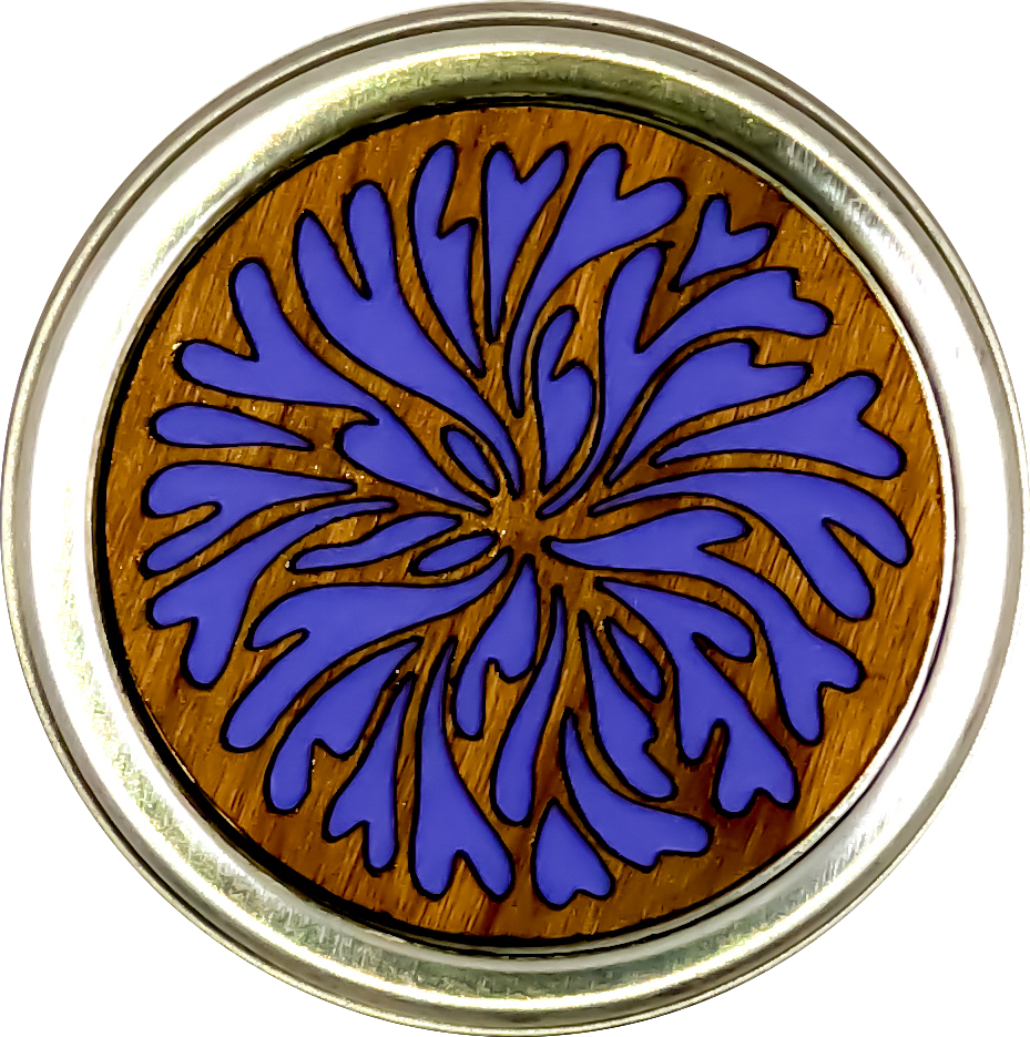 Blooms wood and metal dreambox (colors assorted). (colors are always assorted, may not match colors in image) 2 1/8" in diameter. 1st photo is image of this specific listing style, 2nd photo is sample box side view, 3rd photo is display package.