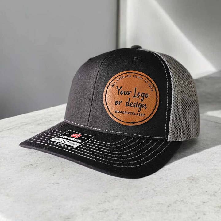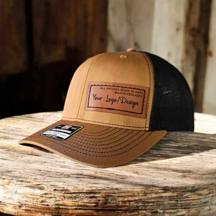 How They're Made: We sew every patch to your cap to ensure a secure placement. Your logo is embossed or laser engraved to the patch. All of this is done in our Idaho workshop. About Your Logo/Proofs: Email your vector logo to design@madriverlaser.com - reach out if you need help, we're happy to guide you through the process. Proofs will be sent via Faire messenger. Please respond within 48 hours. We cannot print copyright images that do not belong to you. About the Hat: Classic trucker cap style built with the Richardson quality and fit you've come to expect, with your custom Mad River patch. We carry the full Richardson line. Reach out for more options/colors. Specifications • One Size Fits Most 7" - 7 3/4" • Bill: Pre-curved • Mesh Back / Snapback / Adjustable • Front: 60% Cotton/40% Polyester • Back 100% Polyester • 6 panel mid-profile • Blank hat made in Bangladesh or Vietnam • Decorated and Shipping from Idaho USA • Substitutions are available for out of stock colors.
