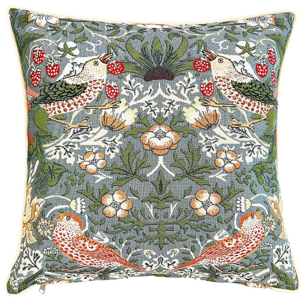 Beautiful pillow cover with an antique print of a William Morris. Finely crafted with a hidden zipper for easy cleaning. 100% Polyester/Linen Look 18" x18" Minimum Order Qty: 2