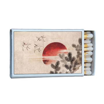 Our slide boxes are available in two sizes small and large. The classic small slide box comes filled with either petite peppermints or standard size wooden matches. Our large slide box comes filled with 4” matches; perfect for lighting candles or a cozy fire. This product is 100% made in the USA. Small size: 2” x 3” x 1" Large size: 5” x 3.5” x 1.5"
