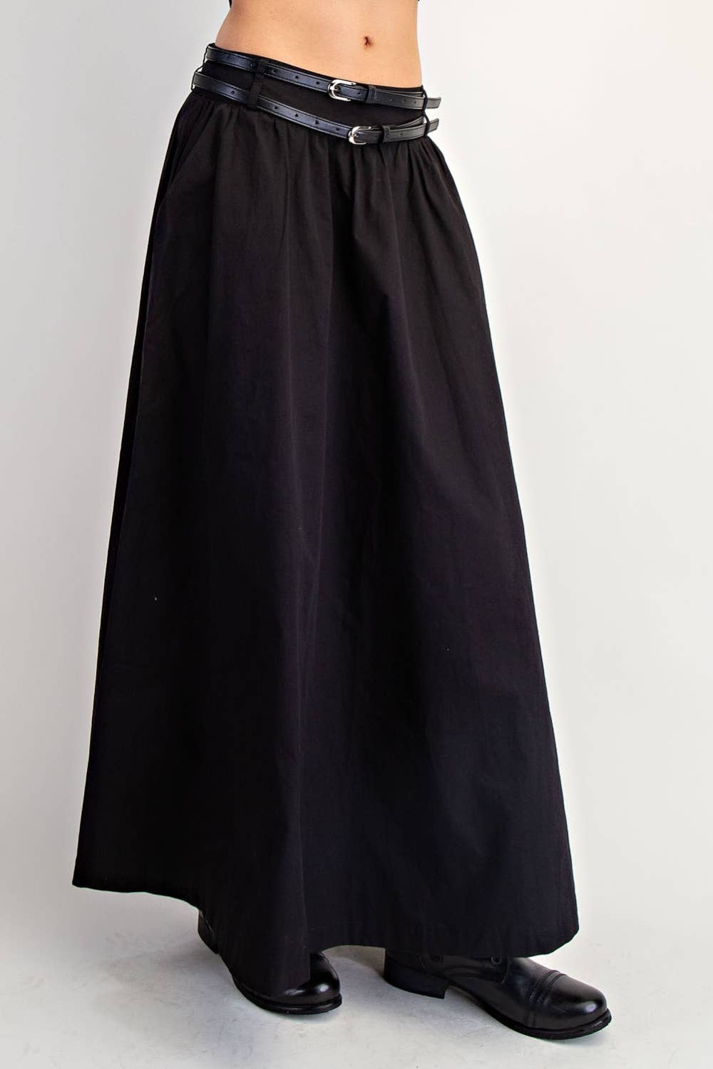 SKU: SKIRT-Basic-Black-EEVEE-OSReg Made in China Aesthetic: Classic and Minimalist Fabric: 92% Polyester 8% Spandex Fit: Contemporary and Junior Occasion: Everyday and Night Out Pattern: Solid Rise Style: High Season: Core Skirt & Dress Length: Maxi Skirt Style: A-line Weight: 340.19 g (12 oz)