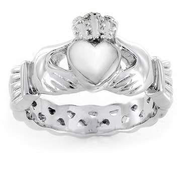 Sterling silver claddagh ring with weave, celtic sterling silver ring, claddagh promise ring, celtic engagement promise crown ring An irish celtic symbol, the claddagh ring is worn by many today to symbolize love, loyalty, and friendship. Wearing the ring a certain way can signify your romantic involvement. Sterling silver claddagh ring. Can Be worn as a regular ring, wedding ring, friendship ring. Claddagh ring is worn with the intention to show the wearer's relationship status: On the right hand with the point of the heart toward the fingertips: the wearer is single with the possibility of looking for love On the right hand with the point of the heart toward the wrist: the wearer is in a relationship On the left hand with the point of the heart toward the fingertips: the wearer is engaged.