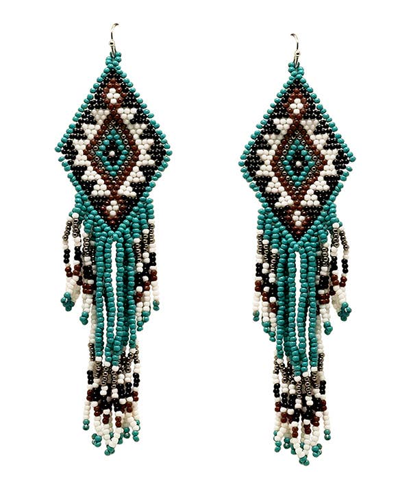 Western Style Aztec Seed Bead Fringe Drop Earrings