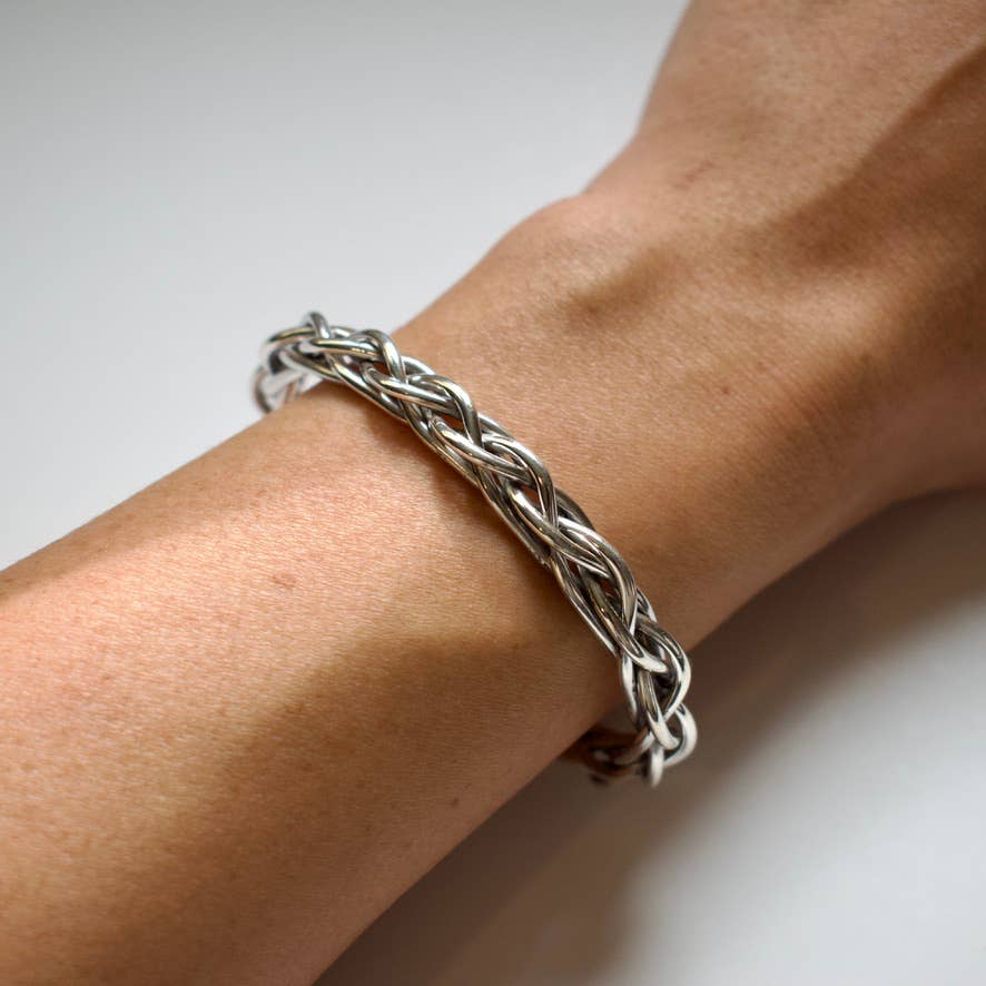 This ring is handmade using .925 sterling silver. These rings pair well with our bracelets and hammered earrings of similar design. These rings are thicker than our stackable rings and therefore can be sized by jewelers. We have even had some customers add precious stones to them to make their own unique designs.
