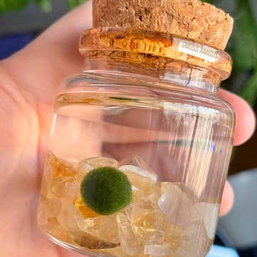 Small Marimo Moss Ball Terrarium with Citrine Gemstones
