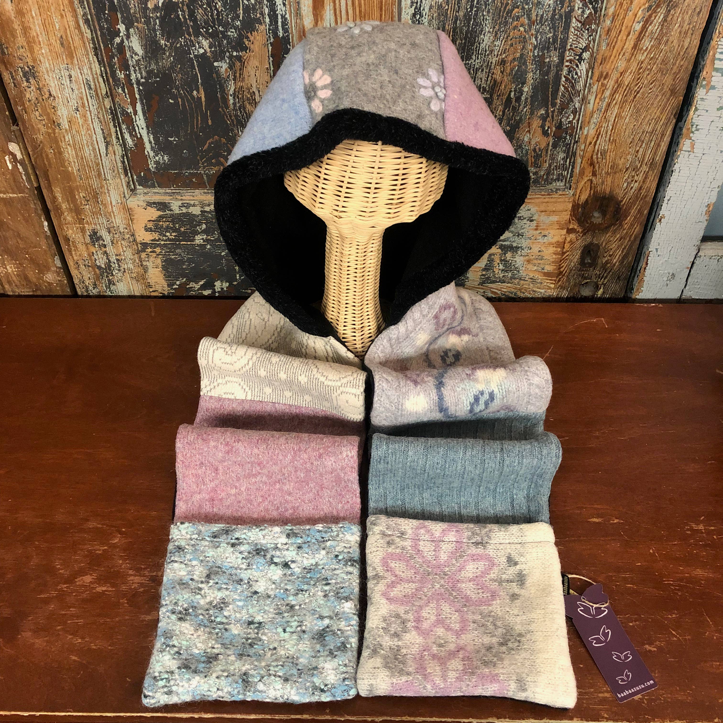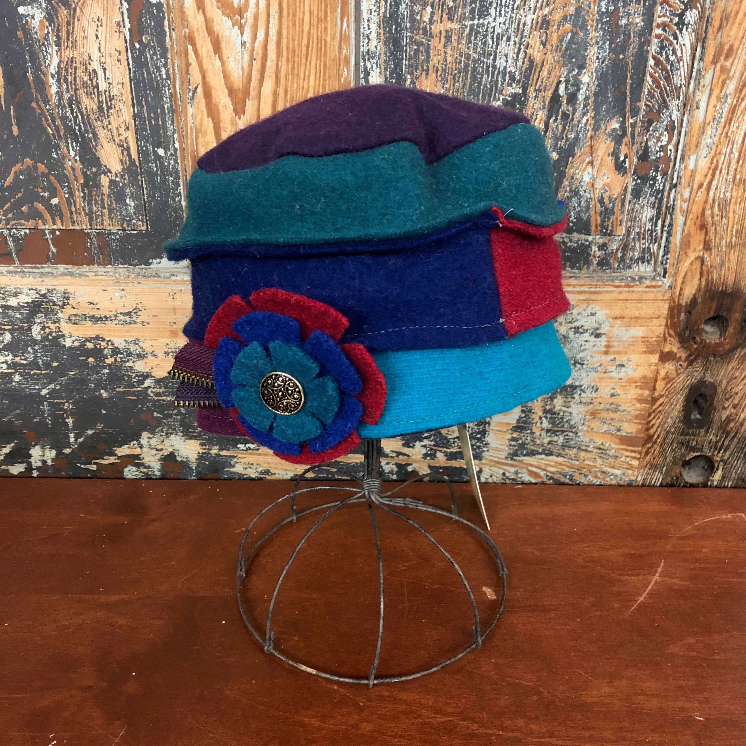 Lined with soft micro fleece, made from recycled plastic and brimmed with berber fleece, the baabaazuzu rolled pillbox hat combines classic style with warmth. Each hat is created from vintage recycled woolens and is truly one-of-a-kind. One size fits most.