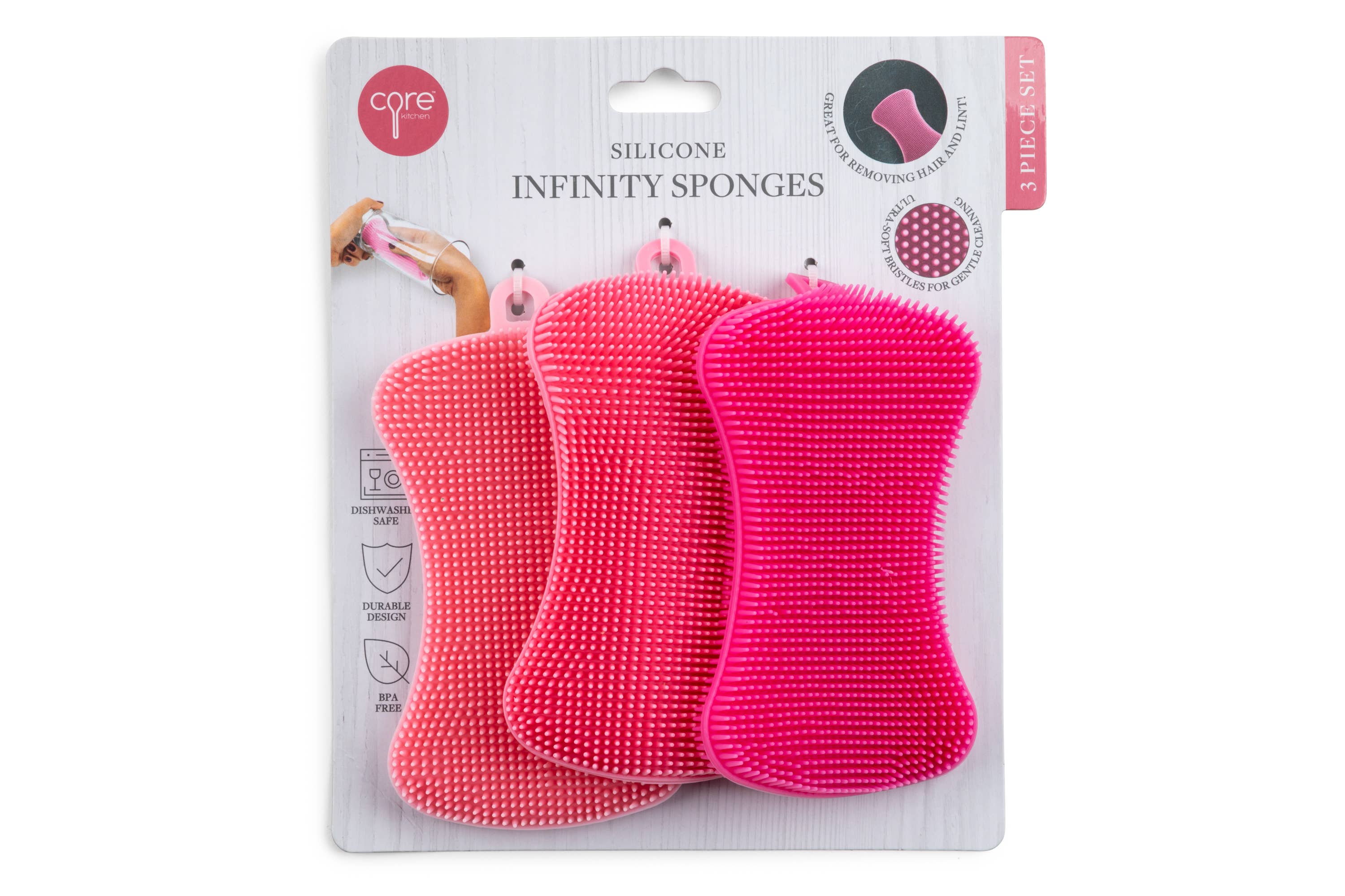 Double-sided, durable silicone scrubbers last longer than their disposable sponge and scourer counterparts. They can be cleaned in the dishwasher for easy care. Packaged in adorable monster-themed packaging. Safe for non-stick pans. Size: DIA5.5in Material content: Silicone Care instructions: Dishwasher safe