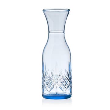 Our half carafe is perfect for pouring. But don’t stop there — its eclectic, bubbled ridge feature makes for an untraditional vessel to store everything from kitchen utensils to dried pasta to colorful bouquets. Switch it up, or get both for endless possibilities. Due to the handmade nature of our products, each is a work of art; a one-of-a-kind piece with slight variations in color, texture and shape. Our glassware is hand blown in Marrakesh and made of recycled glass. Sustainability never looked so good. Details: Available in tinted Crystal Clear Blue. Size: __________ Care Guide: Dishwasher and Microwave Safe