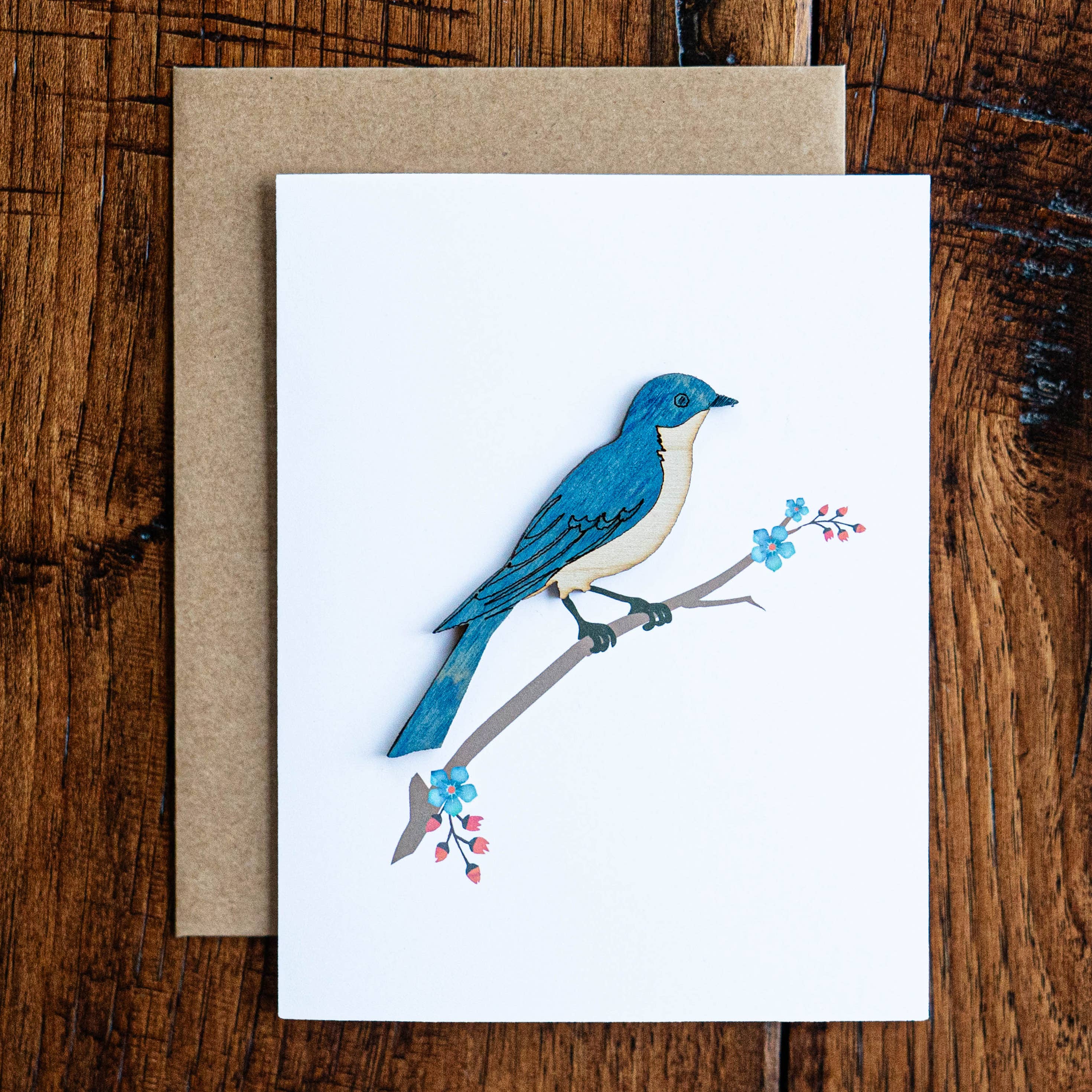 This Safe Travels swallows greeting card measures 5.5"x4.25", is printed in my home studio on 100% recycled card stock paper, and is paired with a 100% recycled kraft brown envelope. Inside is blank. Cards can either be purchased packaging-free, or individually packaged in clear plant-based PLA "plastic" open-ended sleeves for protection while on display. The back reads: