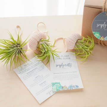 Welcome to the world of Air Plants! These wonderful plants don't need soil to grow & they can flourish in many different environments. Additionally they only require a moderate amount of light and watering about once per week. Tillandsia Air Plants are extremely low care and are perfect for gifts. Includes: Pink Sea Urchin on Nautical Rope with Air Plant Listing does not include gift boxes.