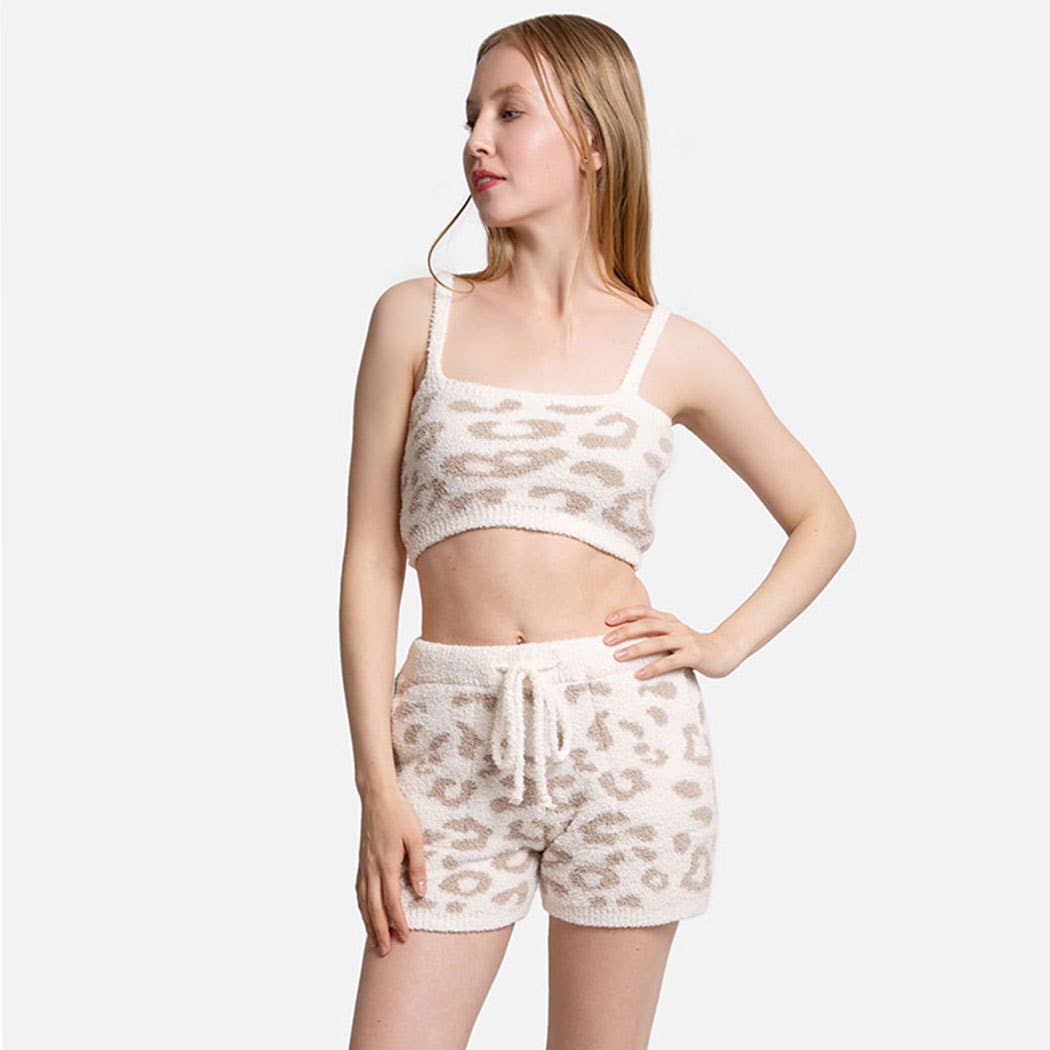 HIGH RISE LEOPARD PRINTED DENIM SHORTS PRINTED JEAN SHORT SAND COLOR FRAY HEM ZIP FLY NON DISTRESSED IMPORT 10" RISE , 2.75" INSEAM IN SIZE S 97% COTTON , 3% SPANDEX
