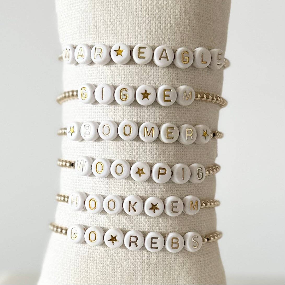 Durable quality bracelets made with 14 K gold filled accents. These bracelets are perfect to add for game day! The 14k gold filled accents do not tarnish and are sunproof. Custom orders are welcome, just send a message!