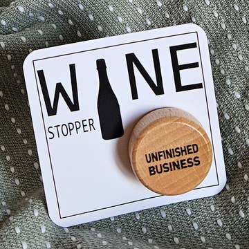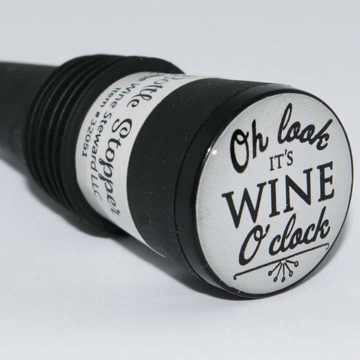 Bottle stopper with "Wine and Friends Improve With Age" design on a thermal plastic rubber base. Easy to use and creates a tight seal that even allows the bottle to be stored on it's side. Bottle Stopper display shown (item # BSDisplay24) is available with minimum initial order of a variety of 72 bottle stoppers. Custom/name drop stoppers are also available - see our custom page for samples, custom orders take up to three weeks. Unit size: 2.5"x1"x1".