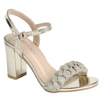 *Pointy toe dressy mesh pump *Ankle strap buckle *Rhinestone bow *Metallic triangle shape heel *Imported *All man made materials *Approx. 4" heel height Be the brightest star while wearing this geometric metal heel. Mesh pointed toe with rhinestone accents and bow completes this fashionable style.