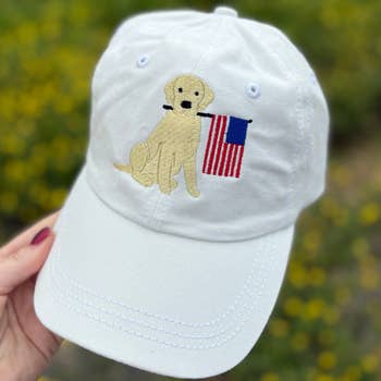 A classic six-panel baseball cap with embroidered dog illustrations and an adjustable strap for a perfect fit. DETAILS - UPF 50+ - Tuck strap with gold metal slide - One size fits most - Embroidered details