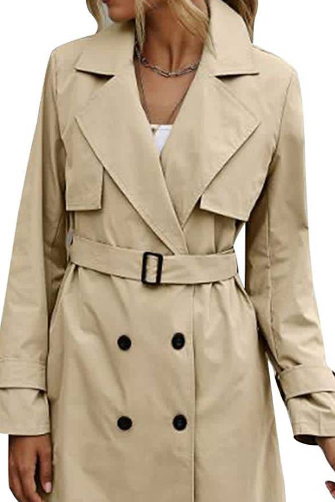 CT020 Women's Shoulder Ruffle Commuter Knee Length Coat