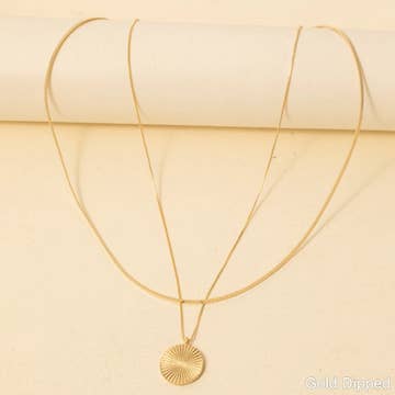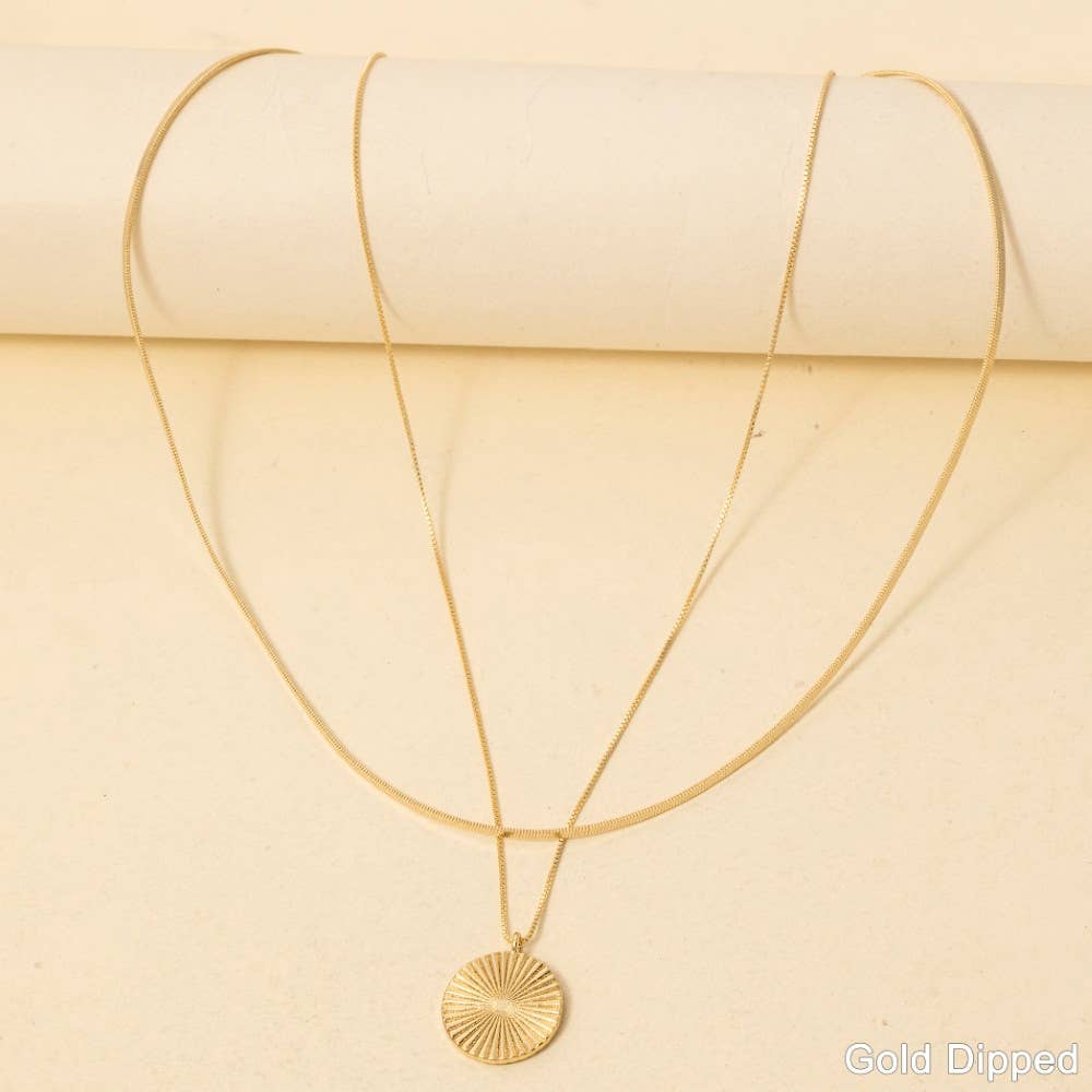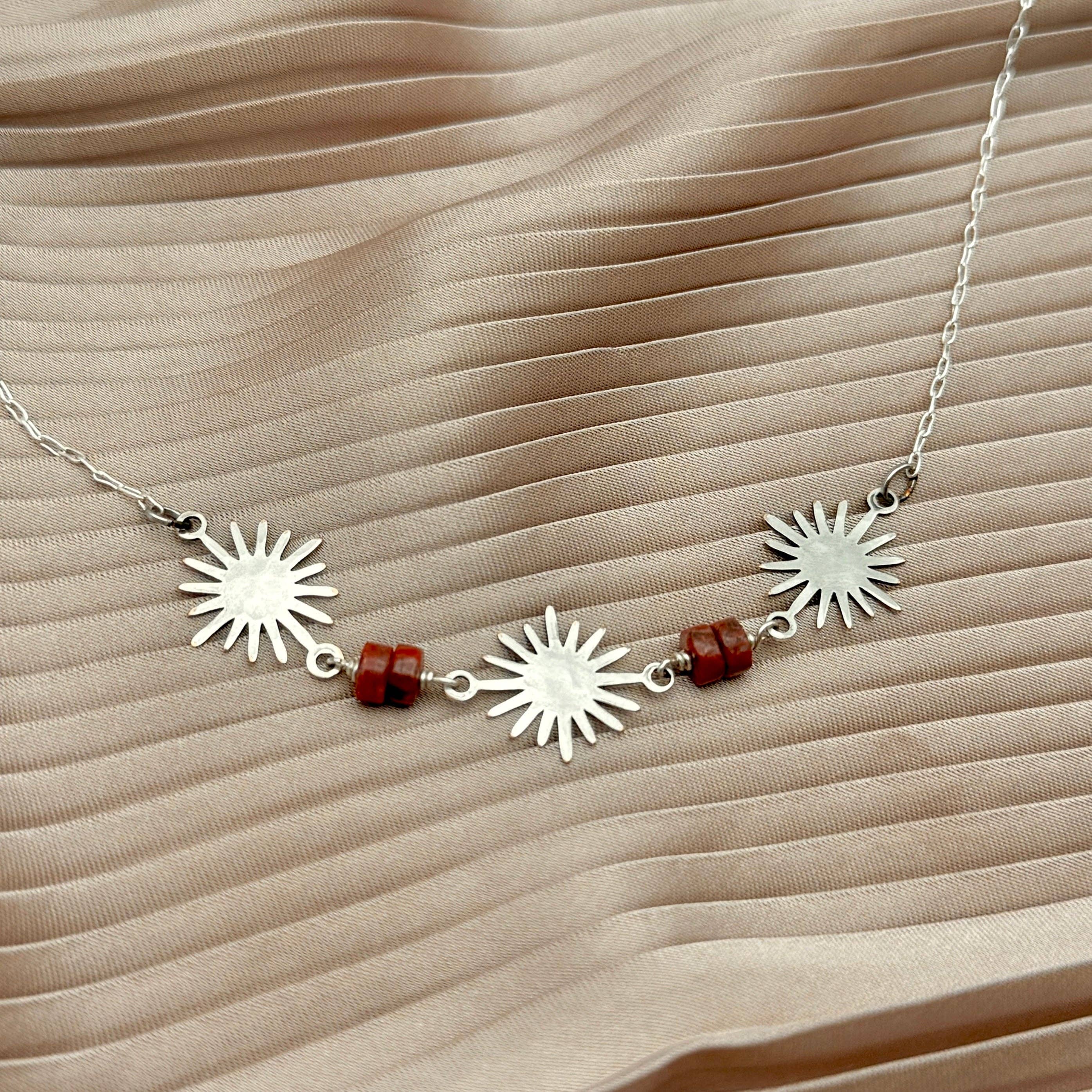 Three tiny textured discs hang from Sterling Silver or 14 Karat Gold Fill chain. Pendant Approximate Measurements: * 10 mm wide * 10 mm long ----- Ear wires and necklace chains are hypoallergenic and are sterling silver or 14 karat gold filled. Gold and silver pendant pieces are made of raw brass or sterling silver plated brass and can be polished the same as all other precious metals.