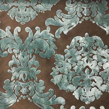 Wholesale SWATCH- Designer Burnout Antique Inspired Velvet Fabric Eggshell Blue And Gold