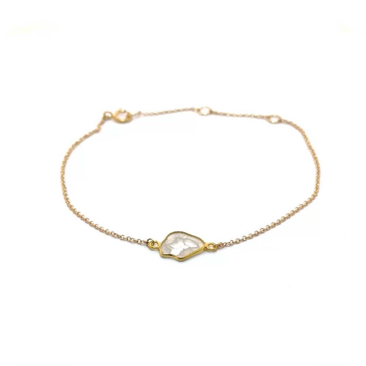 Part of our Solo Bracelet Collection, this bracelet features a hexagonal-shaped charm. This everyday bracelet is easily stackable with your other arm candy and will pair with any look you come up with. Handmade with care in Austin, Texas. One size fits most. Available in Sterling Silver and 14kt Gold-Fill; Charm and Chain.