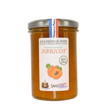 Made in France Shelf life: 24–36 months Storage: Shelf-stable Production: Locally sourced, No added hormones, No added nitrates or nitrites, No antibiotics, No artificial sweeteners, No preservatives, and Non-GMO Ingredients: All "Les Confiotes de Mamie" jams are cooked in a copper cauldron! The artisanal apricot jam is a handmade product with fresh and quality ingredients. The apricots are picked at maturity to ensure a sweet and naturally fruity taste. The traditional recipe is used to preserve all the nutritional properties and taste of the apricot. Little sugar and a hint of agar agar are added to maintain the natural texture of the jam. The artisanal apricot jam is ideal for accompanying toast, croissants, or yogurts. It can also be used as a base ingredient for pastry or confectionery recipes. Prepared with 83g of fruit per 100g of finished product Total sugar content 51g Average nutritional value per 100g: Energy value 232Kcal / 971 Kj; Fats (0.4g) of which saturated fatty acids (0.1g); Carbohydrates (45g) of which sugar (45g), dietary fiber (1g); Proteins (0.4g); Shelf life 3 years after the date of manufacture Store in a cool place after opening Weight: 230 g (8.11 oz)