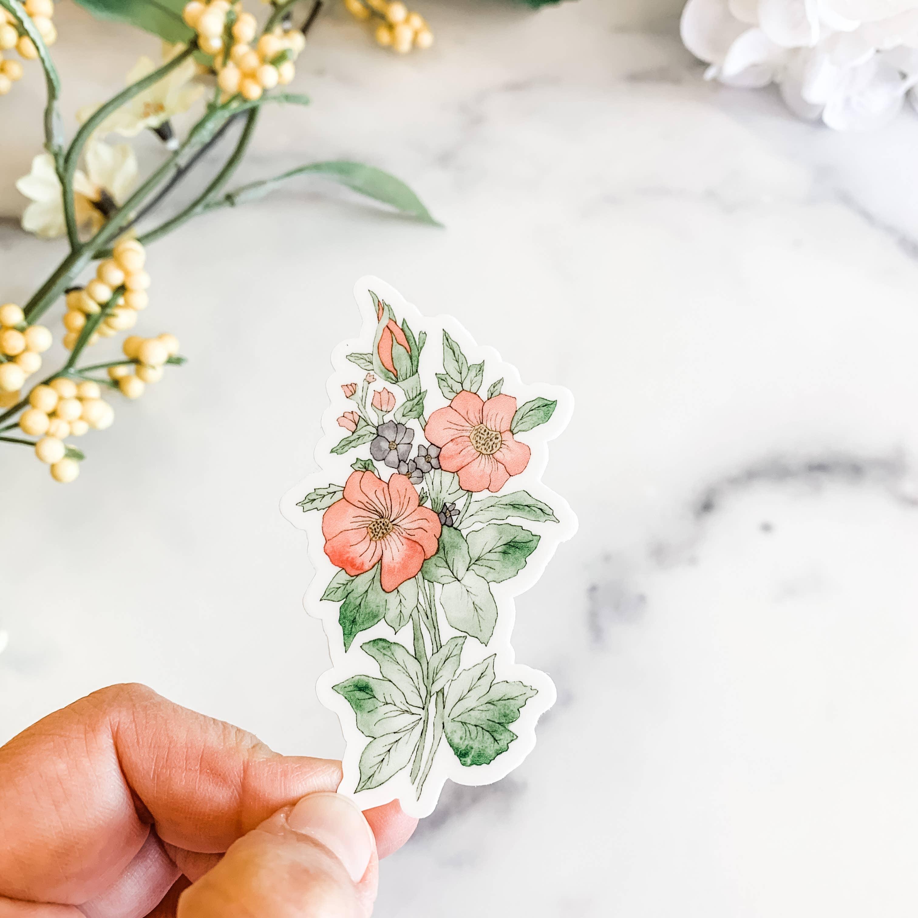 This hand illustrated, watercolor, waterproof & vinyl sticker is perfect for any floral lover. It's meant to be used on your water bottle, laptop, journal, car, etc.