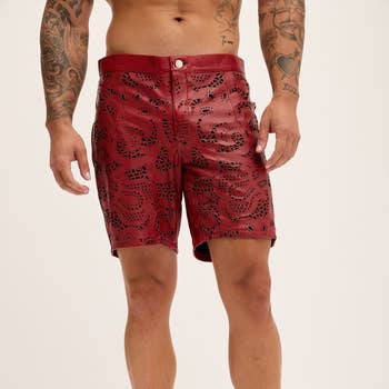 Black tonal checker printed shorts with elastic waistband and draw cord. Features zipper pockets and notched hem with striped tape Regular fit 90% polyester, 10% spandex Imported