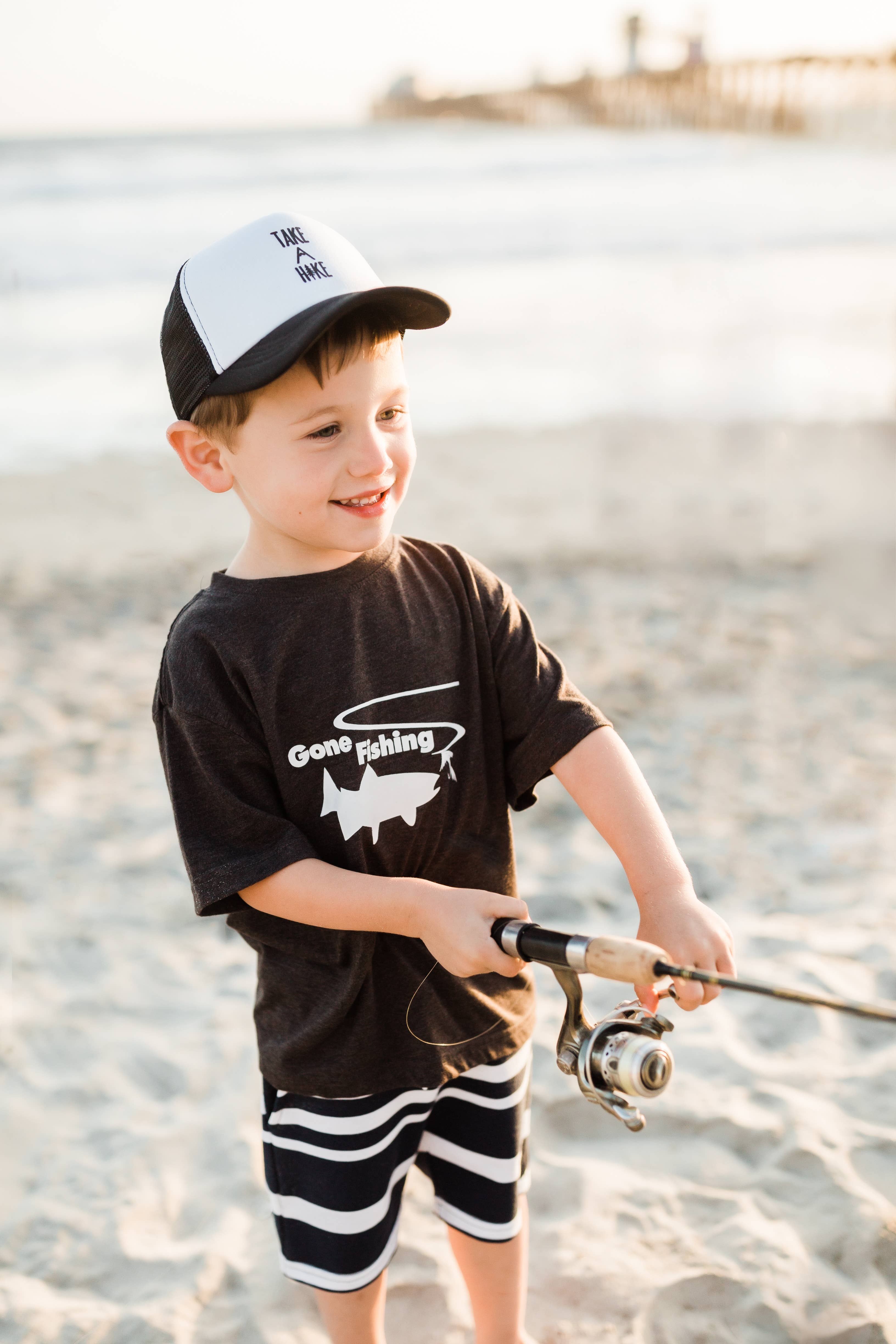 Our Gone Fishing design printed on heather grey 7.8 ounce 50/50 cotton/polyester hoodie. Hood is double lined. Comes in sizes 2T, 3T, 4T, and Youth XS, Small, Medium, Large and X-Large. SIZE CHART XS S M L XL Size 4 6/8 10/12 14/16 18/20 Hoodies can be printed with any of our designs: Adventure Seeker Outdoorable Happy Camper Take a Hike Lake Life Please message us with preference.