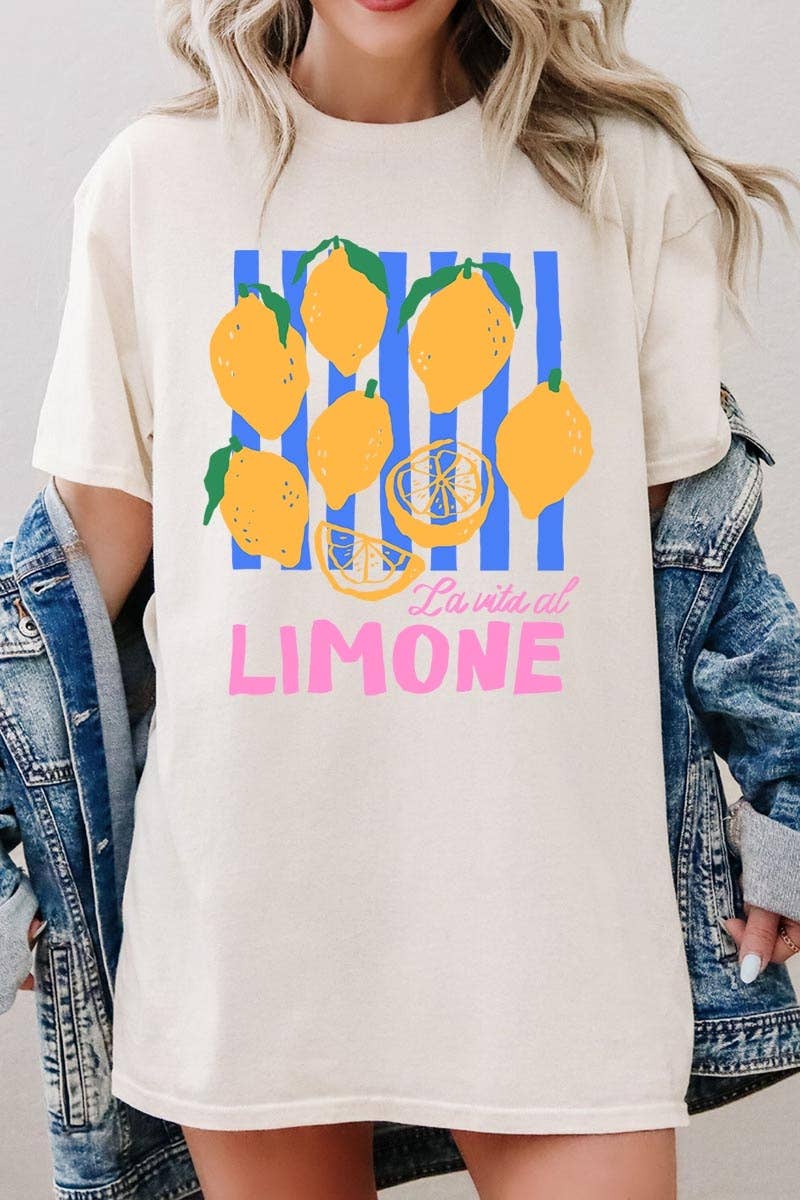 CIAO BELLA LIMONE Oversized Graphic Tee - Premium 6 oz., 100% USA cotton - Made with sustainably and fairly grown USA cotton - Seamless rib at neck - Taped shoulder-to-shoulder - Double-needle stitching - Oversized fit