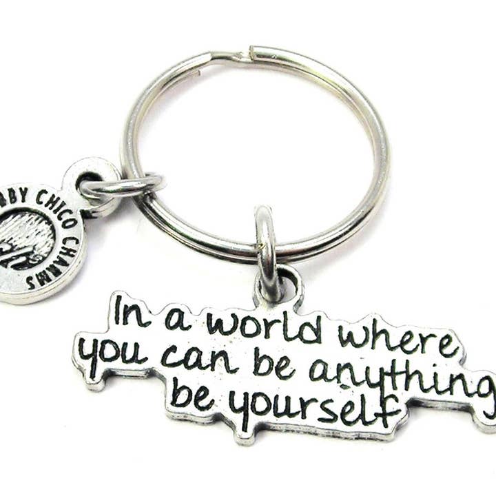 One of our 100% genuine American pewter charms hung from a steel standard size key ring.