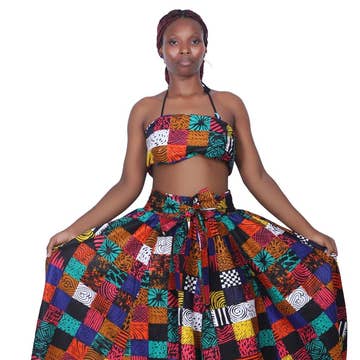 This skirt is a open wrap skirt. It ties inside to adjust and outside finish with a ribbon in a side. It doesn't has pockets. Unlined skirt. * Meet Amooti Team! * All the materials we use are African colorful print, chosen carefully in the market of Uganda. * Check our returns and shipping policy * Material: 50% cotton, 50% polyester