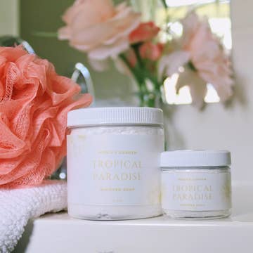 Our luxury whipped soap can be used in replace of your shower gel, it will leave your skin feeling incredibly soft with a long lasting fragrance. Can be also used and a great shaving cream, shower fluff and hand wash. Simply add a small amount to your skin, rub in with your hand or soft spinge and rinse. These come in PET pots which weigh approximately 100g Not for children under 3 years old.