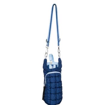 Adventure tested! Hot girl walks just got hotter with our Water Bottle Sling. The zippered pocket features credit card slots, room for a cellphone, keys, and more - making this the perfect walking or event companion. *Featured here with 36oz Water Bottle, sold separately - Large bottle pocket fits bottles (even wine bottles) and tumblers 3.5" in diameter (or less) - Compatible with all Flip + Sip Water Bottles (sold separately) - Double layered, 3mm neoprene protects your essentials from spills and condensation - Features magnetic snap closure to secure smaller items - Front zippered pocket includes credit card slots, room for a cellphone, keys and more - Great for on-the-go: festivals, sports events, traveling, or walks with dogs and kiddos - Perfect for embroidery or heat press - Measures: 5" W x 4.5" D x 11" H; Pocket: 4.5" W x 8" H; Strap extends to 46"; 0.6lb when empty; Holds up to 10lb