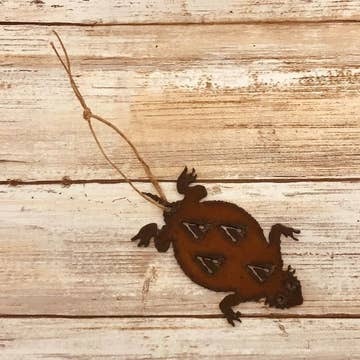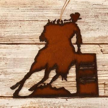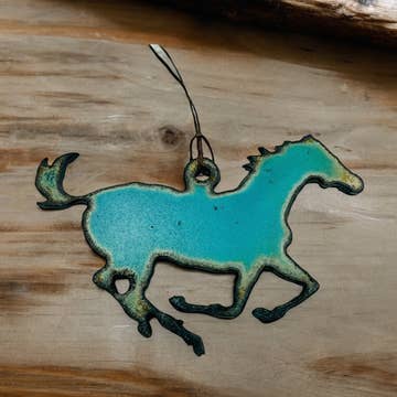Horsehead ornament. 3.5 H x 3.5 W This Ornament is made with 18 Gauge Steel. Do to the Natural Rusting Process color may vary slightly, Made In Prescott Arizona