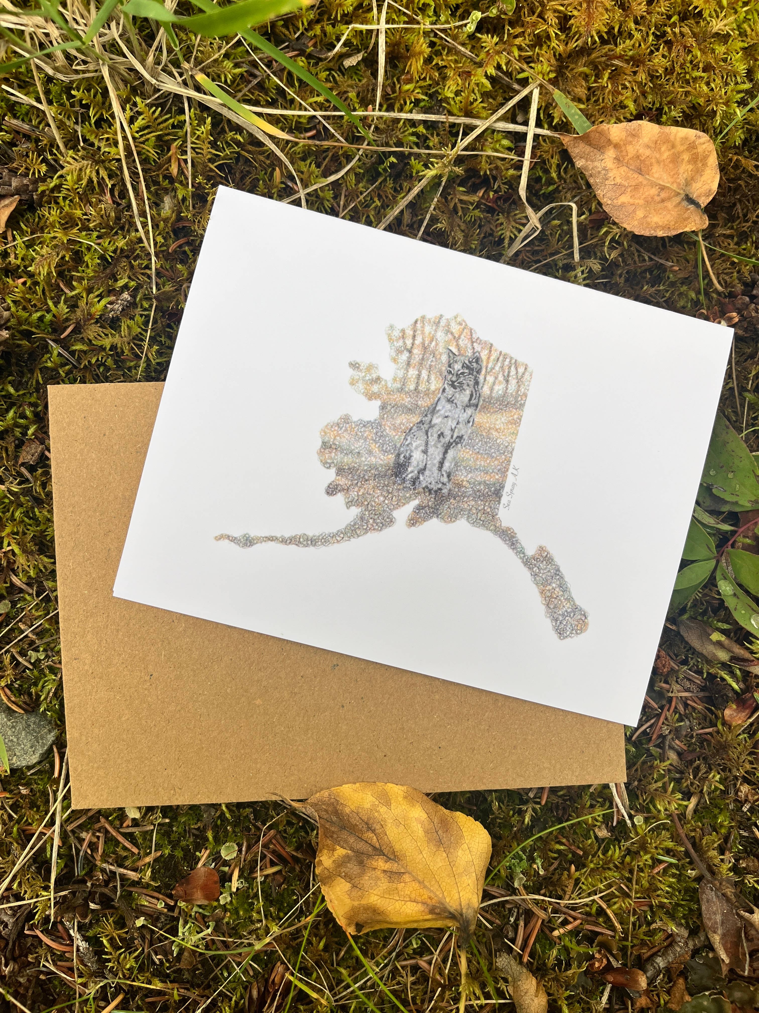 Alaska State Seal Greeting Card was created using layers of swirls and scribbles to create the unique texture of the drawing. The seal is looking comfortable on his big block of ice looking back behind him. Lots of cool blues and grays make up the colors of this card. This is part of the Alaska State series and is drawn inside the outline of Alaska. Each card is 4.5x5.5 and is blank inside. The cards are printed on 80 lb. plain light card stock allowing for vibrant colors. It comes with either a white envelope or kraft envelope and is packaged in a plastic cellophane sleeve to ensure safety of each card. Each greeting card is packaged in house to ensure quality.