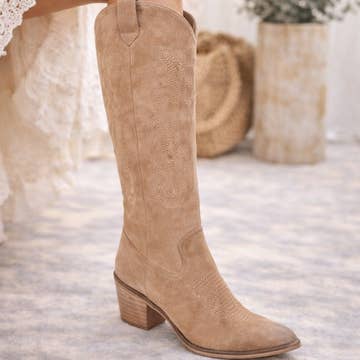 SOLD OUT - The Bailey | Apricot Embroidered Cowboy Bootie