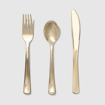 Silver spoons are overrated. We love this gold metallic cutlery, which adds an opulent vibe to any event. The plastic is heavyweight, so it has a nice feel in your hands and you don't have to worry about it snapping or bending. This pack is enough for 10 guests (10 forks, 10 knives and 10 spoons). We'll leave the guest list up to you!