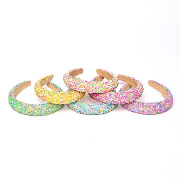 Glitter and felt elastic headbands in four different colors. -handmade -imported