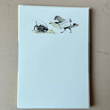 Send your correspondence in style! My hand-drawn illustrations are flat printed with an environmentally-friendly, soy-based ink on premium, USA-made Ecru textured Laid 80# Cover stock paper. All of my creations are designed and printed in New Orleans. DETAILS * 10 flat cards per pack with plain envelope * A6 Horizontal (4.5” x 6.25”)