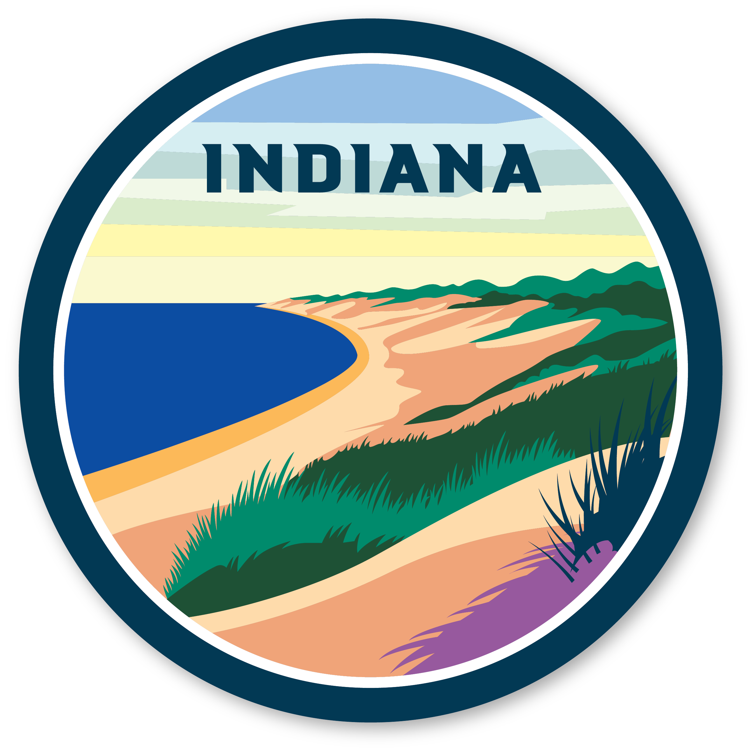 Indiana Dunes National Park Progress Homes Sticker Size: 3" x 3" -Vinyl Waterproof -Cut to shape -Thick -Durable -Peel and stick -Great for notebooks, laptops, phone cases, binders, folders, walls, water bottles, yeti's, and pretty much anything else with a flat surface!