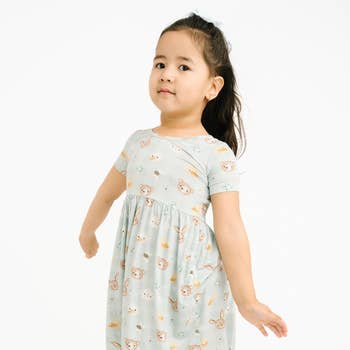Horse & Bird Button Baby Flare Dress+ Bloomer Set(Organic)
