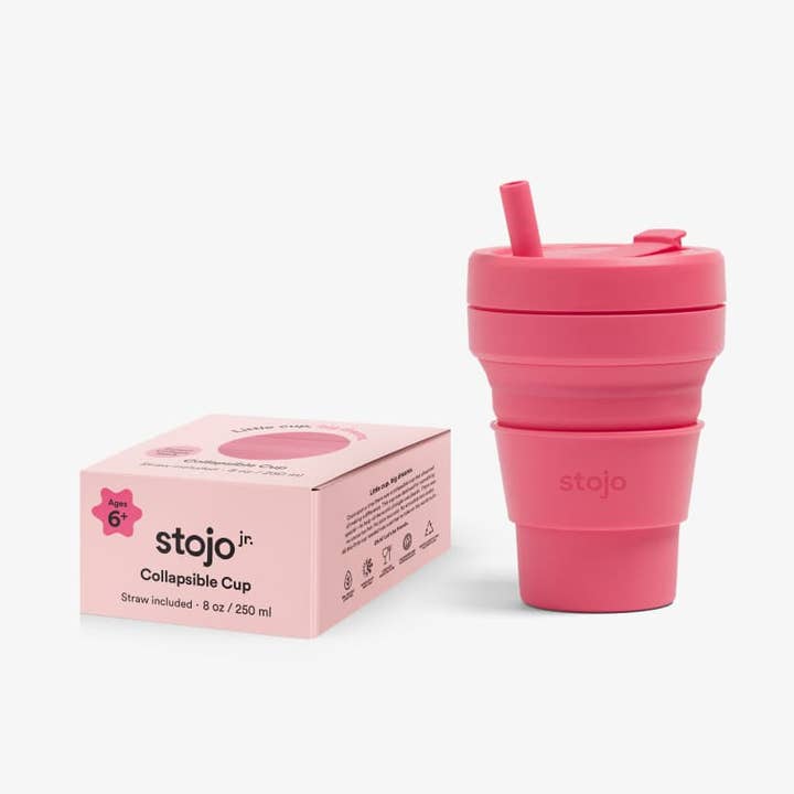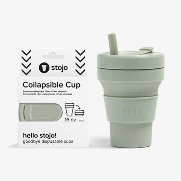 The 16 oz is a perfect pint, and our best seller, which means customers can take that smoothie or beer anywhere their heart desires. All of our 16 oz cups come with a straw for splash-proof sipping. This comes in our collapsed packaging which shows our product in its smallest form (about the size of a hockey puck). This packaging type is perfect for small space storage and gives customers a quick glance on the collapsibility benefit of a Stojo cup. Recommended for Ages 6+ Mouth tab creates airtight, leak-proof seal Dishwasher safe, comes apart for easy cleaning LFGB Certified silicone cup, tab, and straw BPA-free, polypropylene lid and heat sleeve No phthalates, leads, or glues Fits standard cupholders Capacity: 16 fl oz (473 ml) Lid Diameter: 4" (10 cm) Base Diameter: 2.4" (6.1 cm) Height (expanded): 5.5" (14 cm) Height (collapsed): 2" (5 cm) Straw length: 6.2” (16 cm) Straw diameter: 0.5” (1.2 cm) Total Weight: 7 oz (198 g)