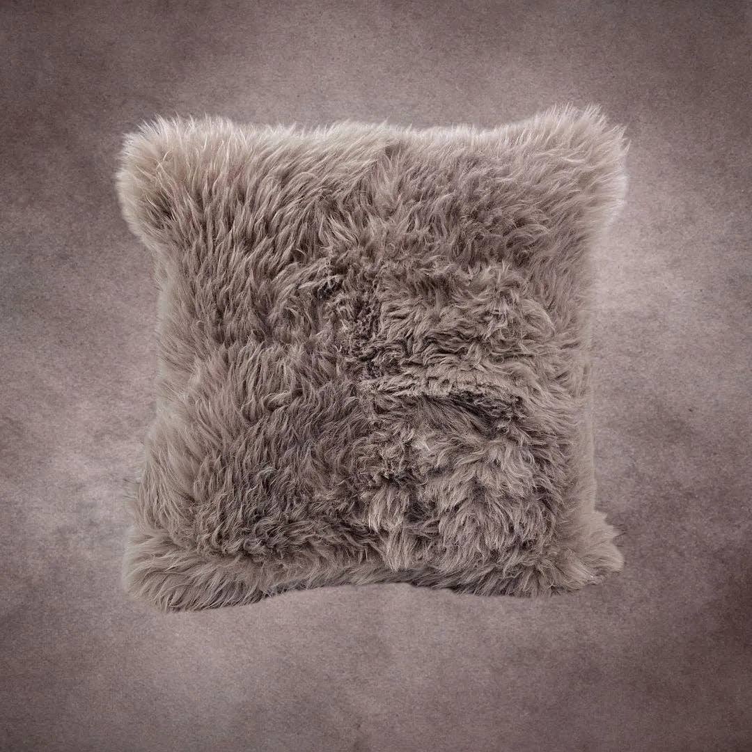100% natural Tibetan sheep skin pillow cover, one side 17x17 in Fabric back side Great for decoration