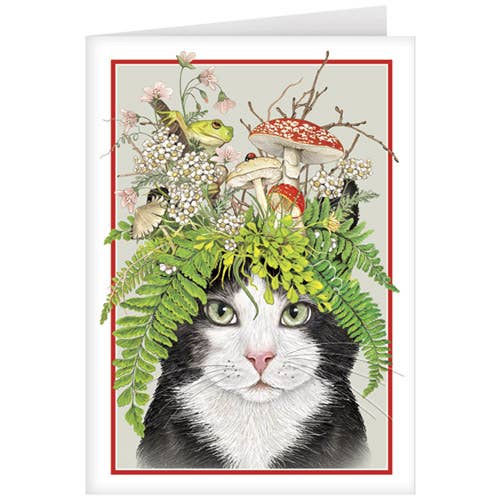 Tabby Cat and Dragonfly Wood Greeting Card