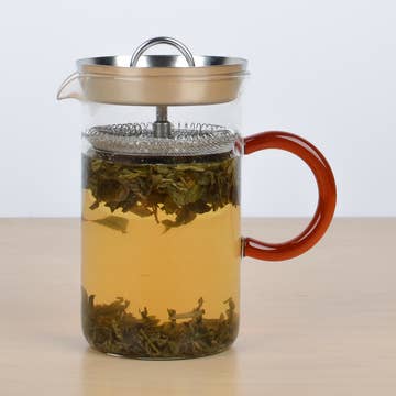 Our Slow System Mini press is designed for steeping loose leaf tea or brewing French-press style coffee—but without the pressure. The press is an elegantly simple loose leaf tea brewer—perfect for high quality teas that can be steeped multiple times. Slip your finger through the ring to remove the strainer, add tea, steep and pour. For coffee, the traditional press plunger actually agitates the grinds when it is pressed down. This means more cloudy coffee—which can affect the clarity of flavor and the “mouth-feel” of your cup. Our “no-press” design makes full-bodied immersion coffee without the press—simply mix coffee with hot water, wait 5 minutes and pour out. Learn more about the Slow System. • 16 oz (500 ml) • 5.5" x ⌀3.5" (140 mm x ⌀85 mm) • Carafe: Borosilicate glass • Strainer: Stainless steel, disassembles for deep cleaning • Dishwasher safe
