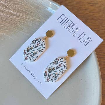 Lynda Drop | Black and White Abstract Floral | Clay Earring