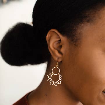 The black and white clay 'Lynda' earring is a stunner! The earring features lightweight clay with gold leaf accent and gold-plated, nickel-free brass components. The lightweight earrings are finished with a glossy resin that catch the light. *each piece is handmade and slight variations will occur