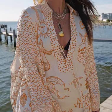 Vintage Print Slim Fit Swimwear with Cover Dress DPSW1018