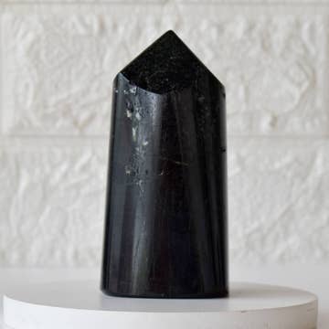 Raw Black Tourmaline on Stand