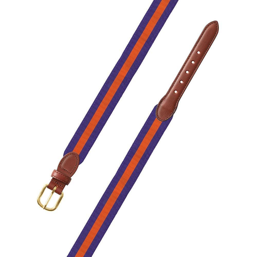 Celebrate your academic journey and express your collegiate pride with our Collegiate-Inspired Needlepoint Belt. Whether you're reliving your campus days or cheering on your team, this belt is a sophisticated and meaningful addition to your wardrobe. Explore the collection and wear your school spirit with style. Needlepoint Belt Sizing To find correct belt size, add 2 - 3 inches to men's pant waist size. Product Description Colors: Purple/Gold Material: 60% Leather/40% Cotton Buckle: 100% Genuine Leather/Alloy Zinc Length: Varies by size Width: 3.5cm